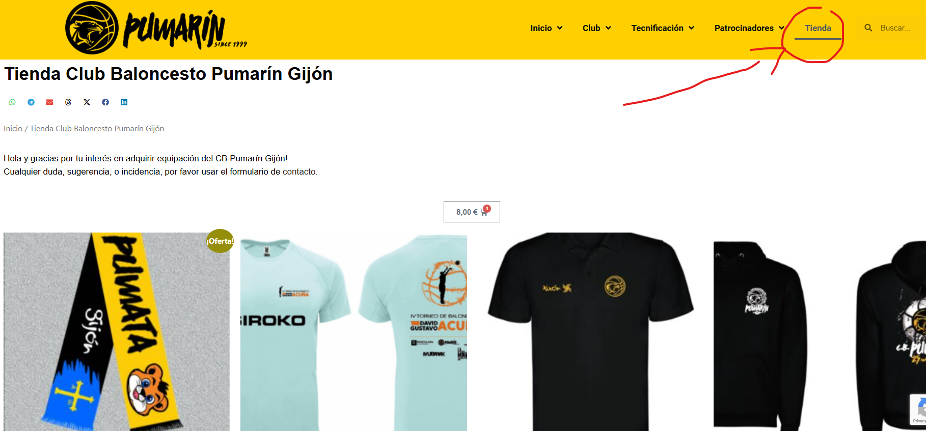 Hola estimada comunidad del Club Baloncesto Pumarín, Aprovechando el lanzamiento de la bufanda oficial del club (iniciativa liderada por nuestro estimada Asociación de padres y madres Pumatas Basket Family) Queremos compartir con todos vosotros una sencilla guía paso a paso para realizar todas las peticiones de ropa y productos que veáis en nuestra Tienda Oficial … Leer más